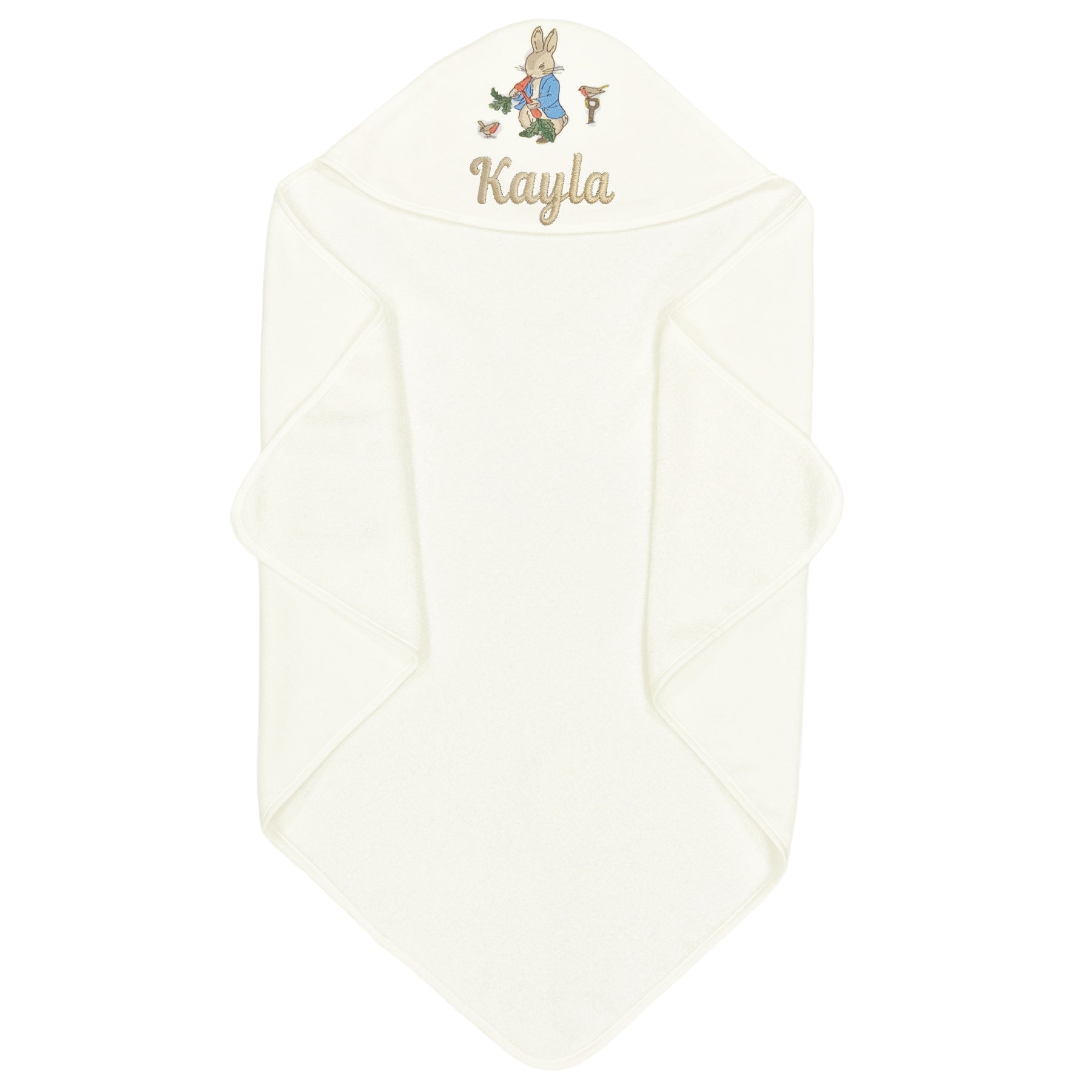 ADORABLE PETER RABBIT DESIGN: Wrap your little one in timeless charm with this beautifully personalised Peter Rabbit baby hooded towel. Featuring the much-loved Peter Rabbit illustration on the hood, it’s a classic keepsake that parents and babies will adore. Made from cotton, this hooded towel is soft, absorbent and gentle on delicate baby skin.