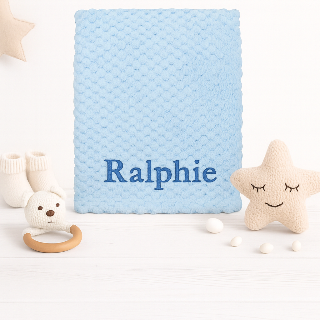 Baby Personalised Soft Fleece Blue Waffle Blanket